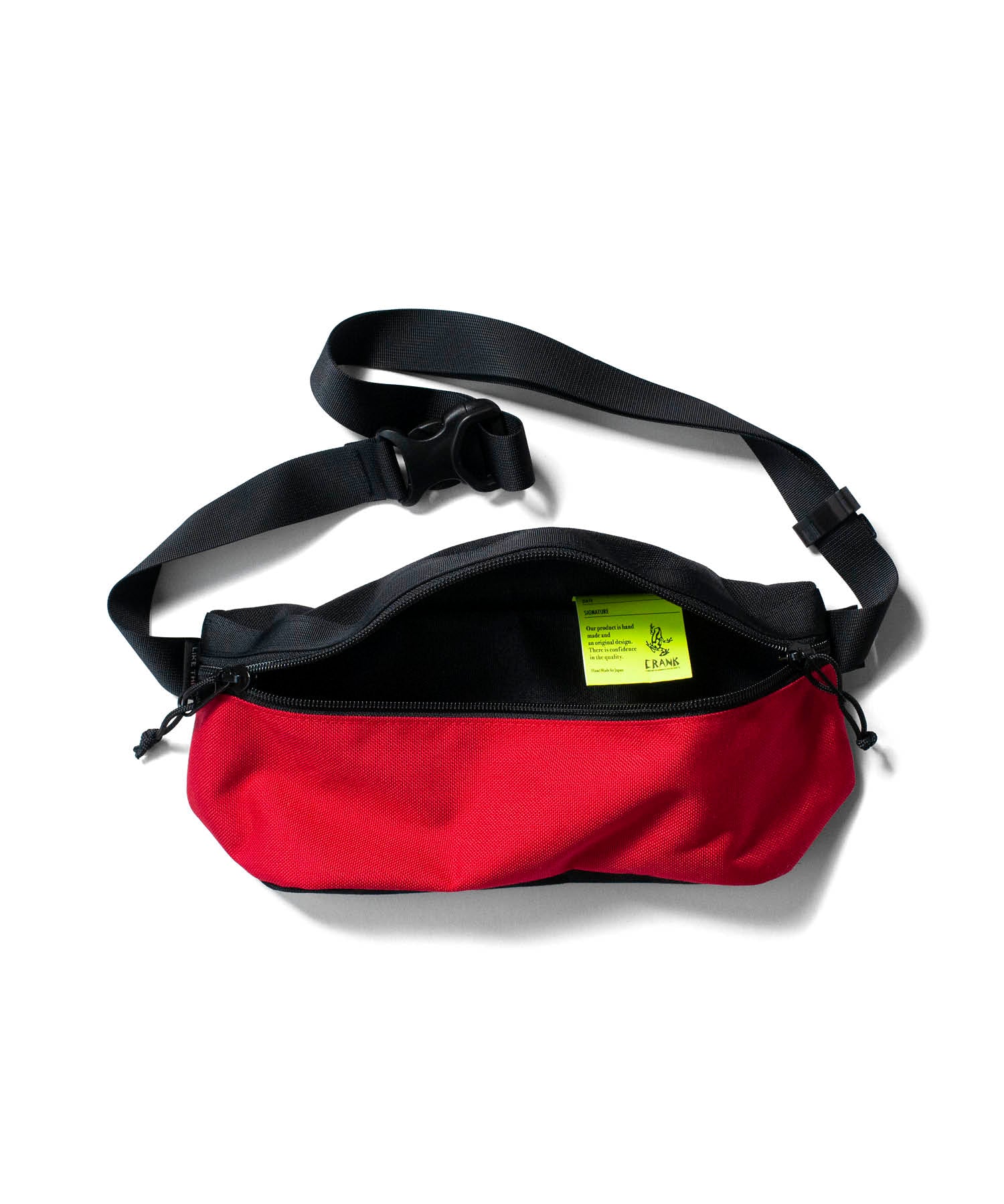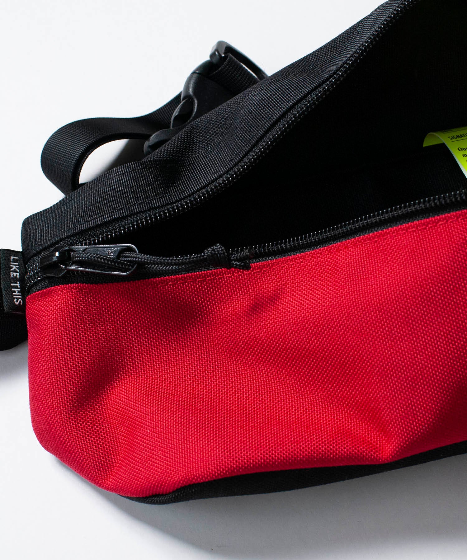 安定のCRANK TOKYO製。通常のナイロンの7倍の強度を誇るコーデュラナイロンを使用し、CRANK製品の製作過程で出るカラフルな端材を利用した、ヒップでシンプルで美しいラインのHIP BAG。ふらっと遊びに行くのにちょうどいいサイズです。LIKE THIS別注。