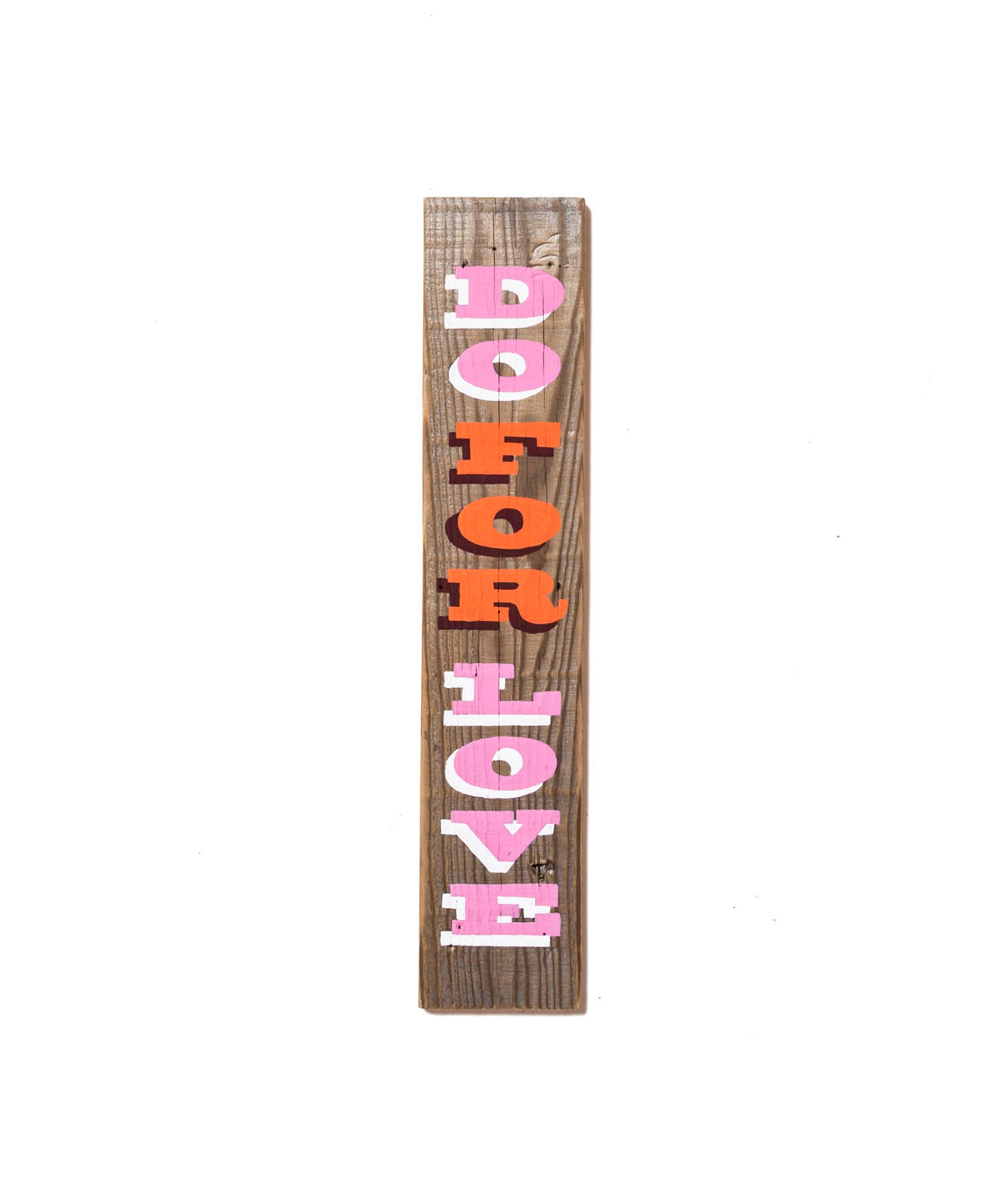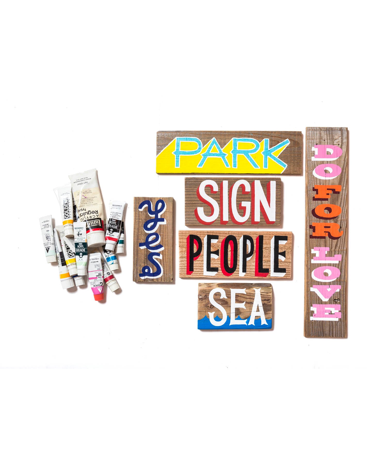 役目を終え、優しい表情を見せる廃材にペイントした一点もの。毎日の空間に、ちょっとしたメッセージを添えてみてはいかが?